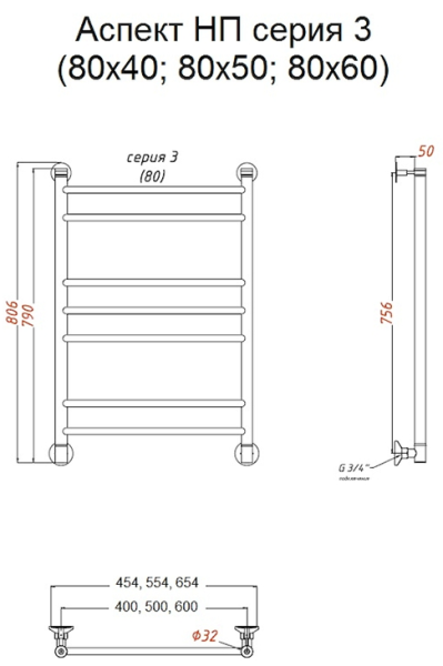 Водяной полотенцесушитель Тругор Аспект НП 3 80x60см хром Аспект3/нп8060 купить