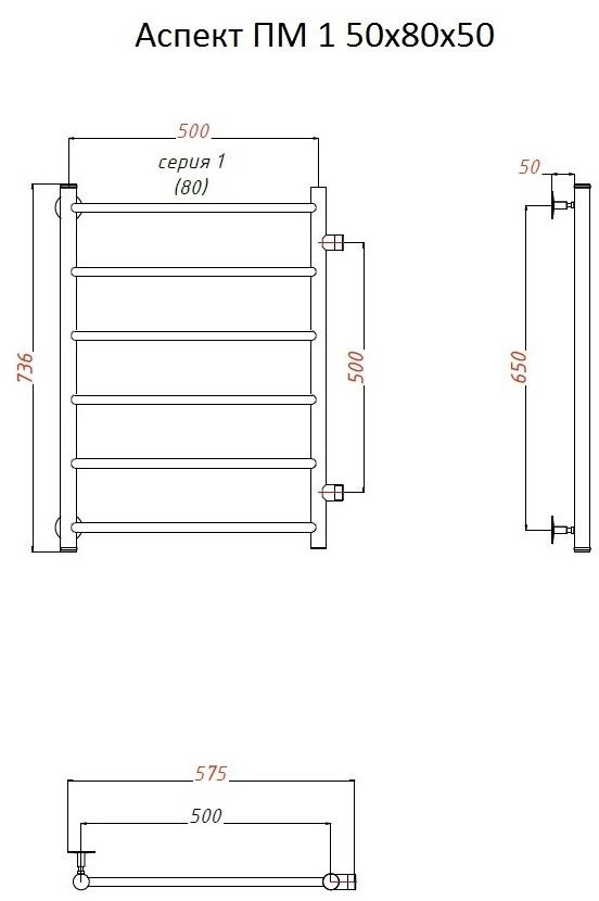 Водяной полотенцесушитель Тругор Аспект ПМ 1 50x80x50см хром Аспект1/ПМ508050 купить