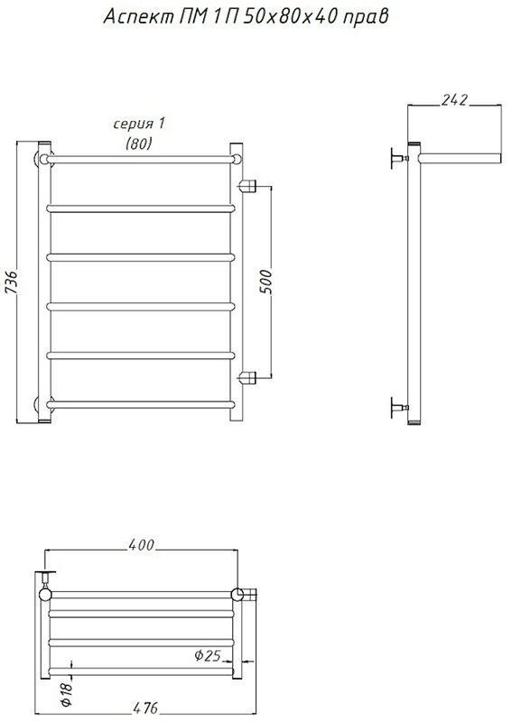 Водяной полотенцесушитель Тругор Аспект ПМ 1 П 50x80x40см с полкой правый хром Аспект1/ПМ508040Пправ купить