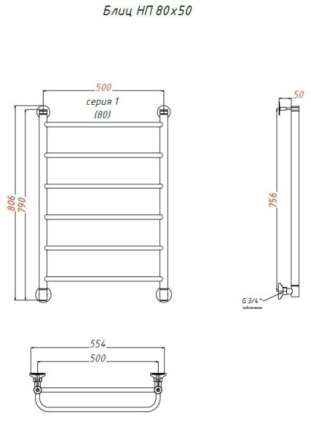 Водяной полотенцесушитель Тругор Блиц НП 80x50см хром Блиц/НП8050 купить