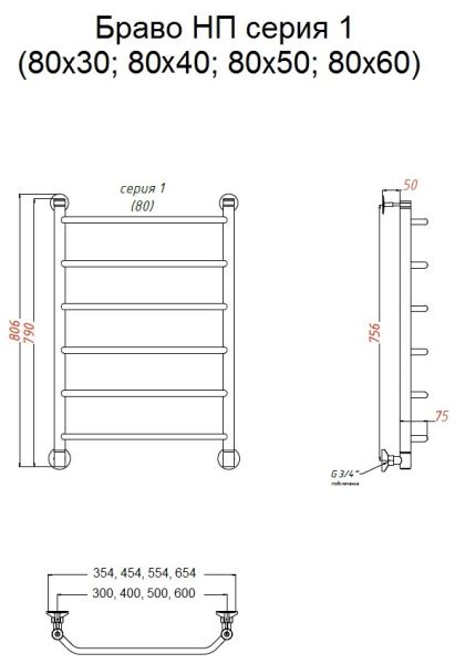 Водяной полотенцесушитель Тругор Браво НП 1 80x40см хром Браво1/нп8040 купить