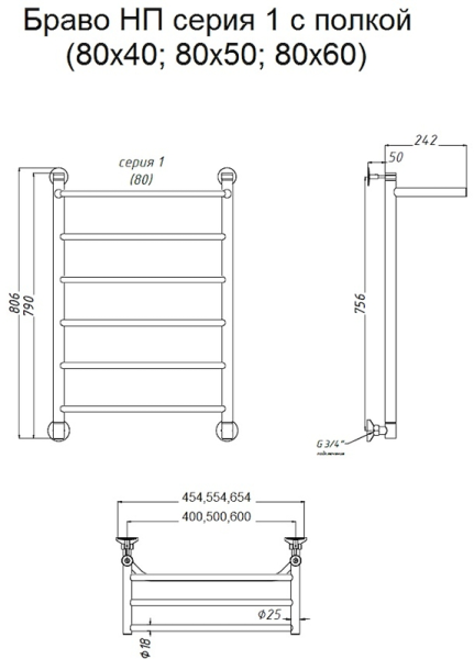 Водяной полотенцесушитель Тругор Браво НП 1 П с полкой 80x50см хром Браво1/нп8050П купить