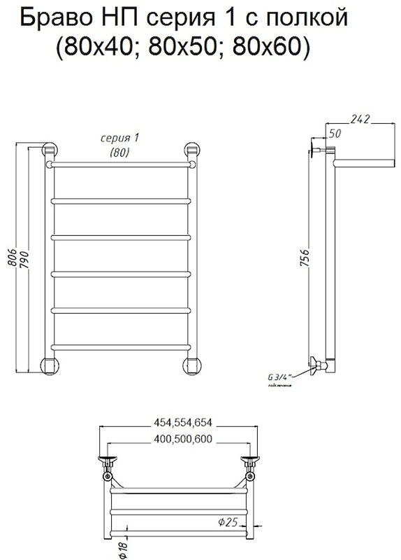 Водяной полотенцесушитель Тругор Браво НП 1 П с полкой 80x60см хром Браво1/нп8060П купить