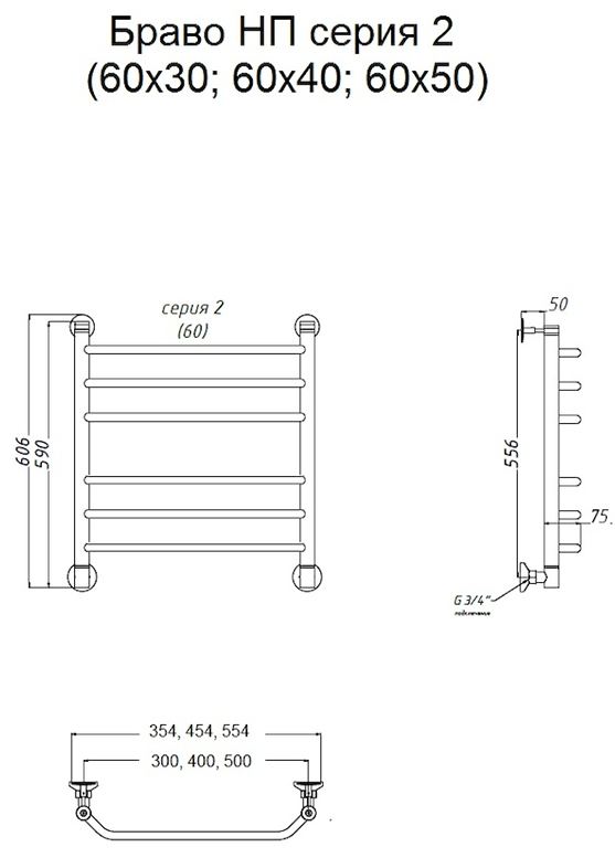 Водяной полотенцесушитель Тругор Браво НП 2 60x50см хром Браво2/нп6050 купить