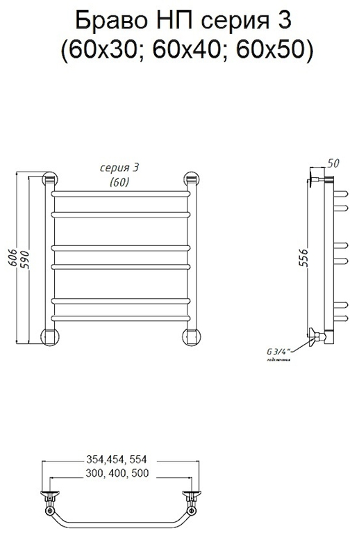 Водяной полотенцесушитель Тругор Браво НП 3 60x50см хром Браво3/нп6050 купить