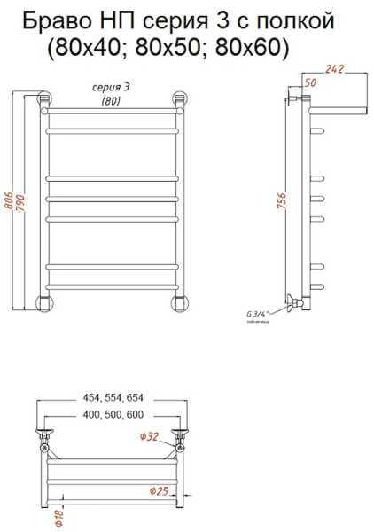 Водяной полотенцесушитель Тругор Браво НП 3 П с полкой 80x60см хром Браво3/нп8060П купить