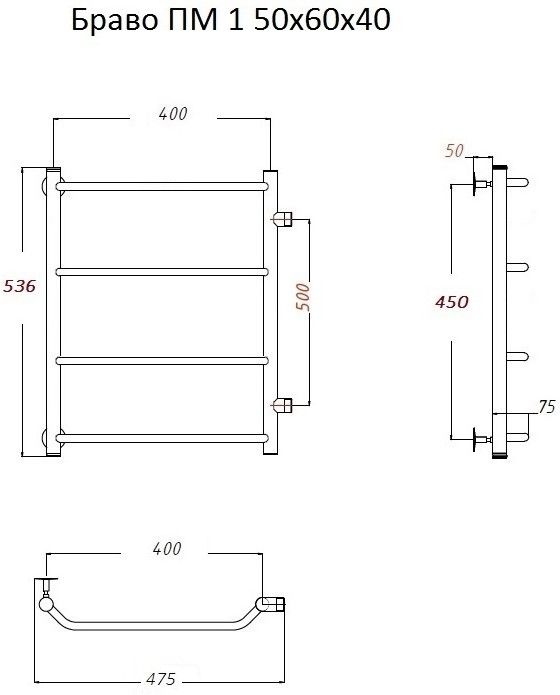 Водяной полотенцесушитель Тругор Браво ПМ 1 50x60x40см хром Браво1/ПМ506040 купить