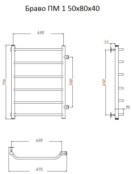 Водяной полотенцесушитель Тругор Браво ПМ 1 50x80x40см хром Браво1/ПМ508040 купить