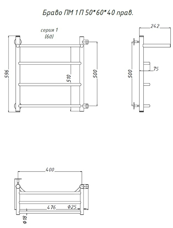 Водяной полотенцесушитель Тругор Браво ПМ 1 П 50x60x40см с полкой правый хром Браво1/ПМ506040Пправ купить