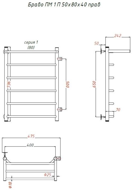 Водяной полотенцесушитель Тругор Браво ПМ 1 П 50x80x40см с полкой правый хром Браво1/ПМ508040Пправ купить