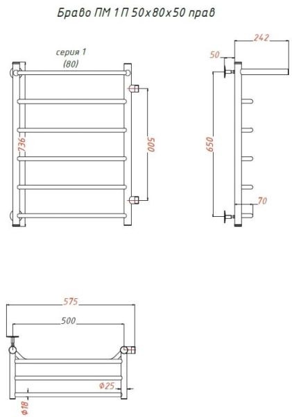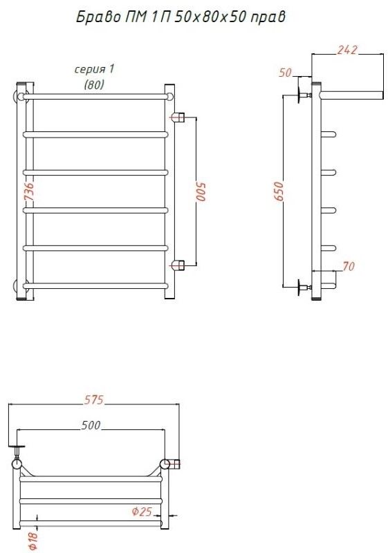 Водяной полотенцесушитель Тругор Браво ПМ 1 П 50x80x50см с полкой правый хром Браво1/ПМ508050Пправ купить