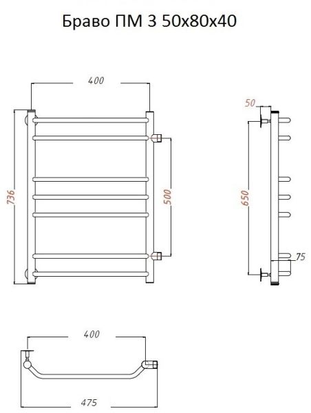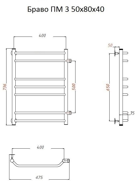 Водяной полотенцесушитель Тругор Браво ПМ 3 50x80x40см хром Браво3/ПМ508040 купить