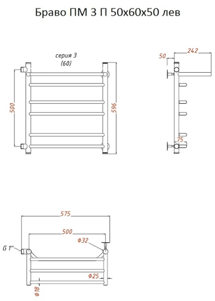 Водяной полотенцесушитель Тругор Браво ПМ 3 П 50x60x50см с полкой левый хром Браво3/ПМ506050Плев купить