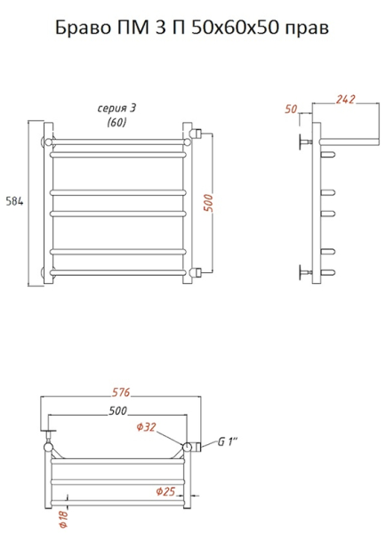 Водяной полотенцесушитель Тругор Браво ПМ 3 П 50x60x50см с полкой правый хром Браво3/ПМ506050Пправ купить