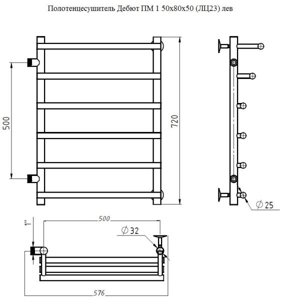 Водяной полотенцесушитель Тругор Дебют ПМ 1 50x80x50см левый хром Дебют1/ПМ508050лев купить