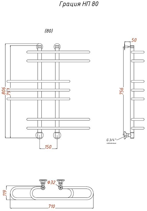 Водяной полотенцесушитель Тругор Грация НП 80x60см хром Грация/нп8060 купить