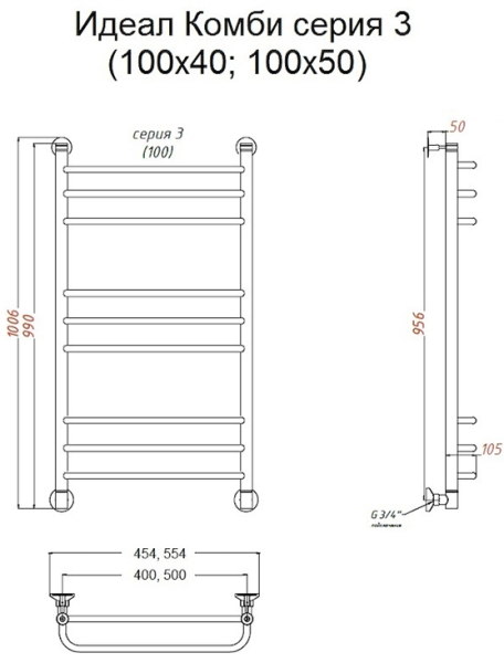Водяной полотенцесушитель Тругор Идеал комби НП 3 100x50см хром Идеал/комби3/НП10050 купить