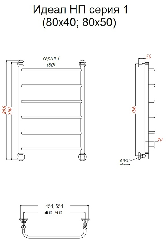 Водяной полотенцесушитель Тругор Идеал НП 1 80x50см хром Идеал1/нп8050 купить