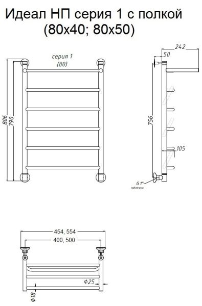 Водяной полотенцесушитель Тругор Идеал НП 1 П с полкой 80x50см хром Идеал1/нп8050П купить