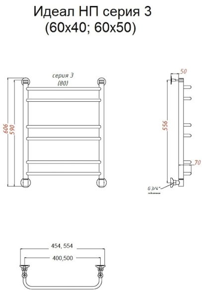 Водяной полотенцесушитель Тругор Идеал НП 3 60x50см хром Идеал3/нп6050 купить