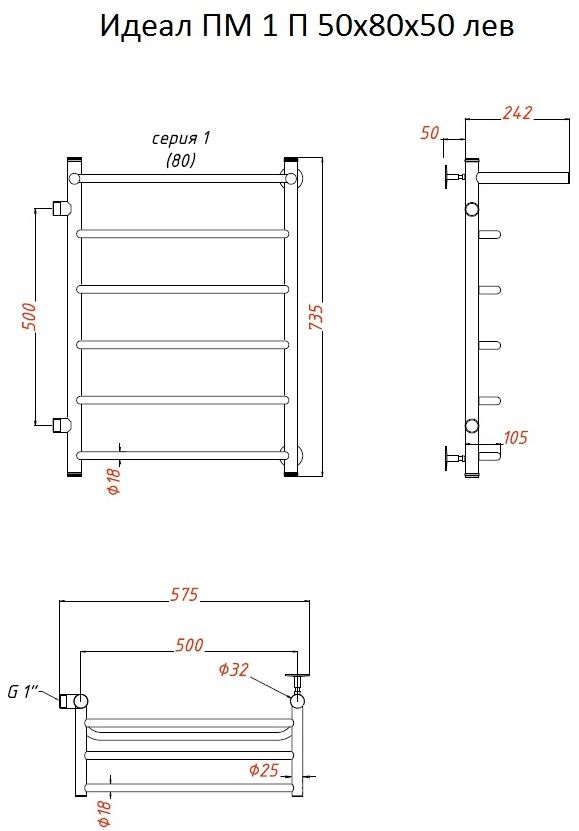 Водяной полотенцесушитель Тругор Идеал ПМ 1 П 50x80x50см с полкой левый хром Идеал1/ПМ508050Плев купить
