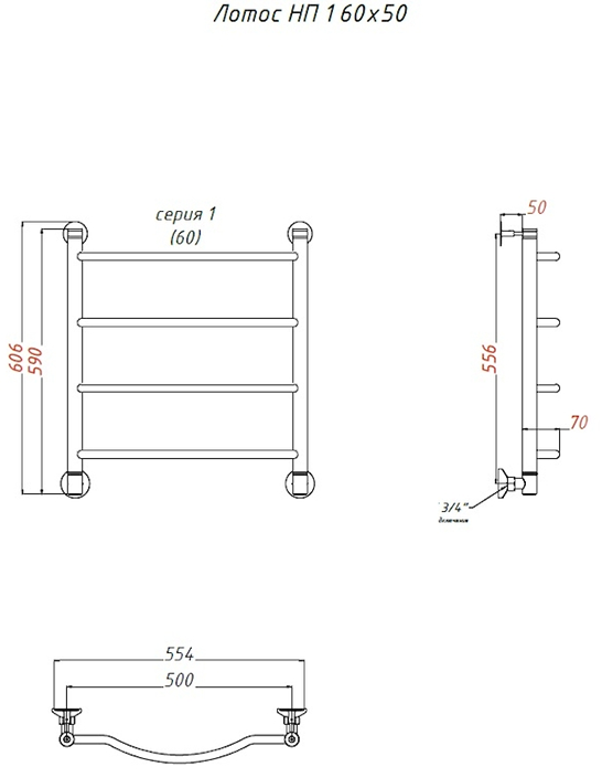 Водяной полотенцесушитель Тругор Лотос НП 1 60x50см хром Лотос1/нп6050 купить