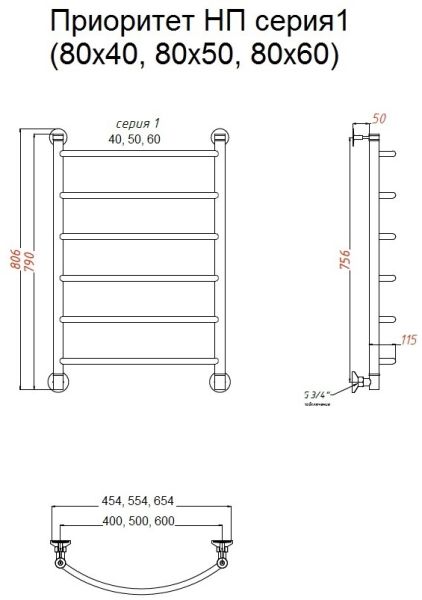 Водяной полотенцесушитель Тругор Приоритет НП 1 80x50см хром Приоритет1/НП8050 купить