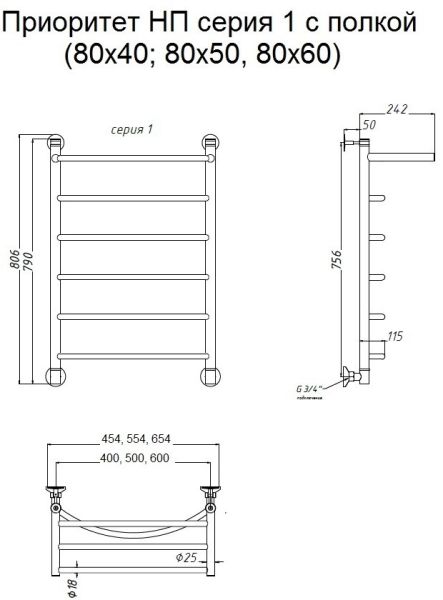 Водяной полотенцесушитель Тругор Приоритет НП 1 П с полкой 80x50см хром Приоритет1/нп8050П купить