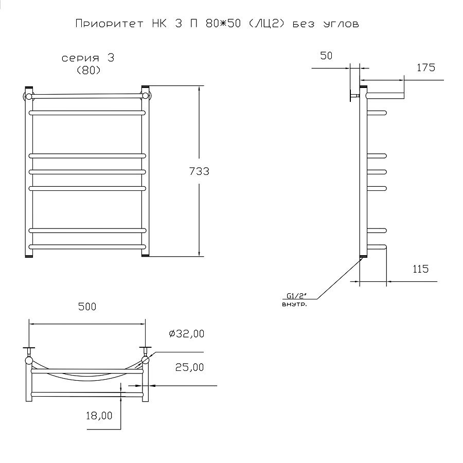Водяной полотенцесушитель Тругор Приоритет НП 3 П с полкой 80x50см хром Приоритет3/нп8050П купить