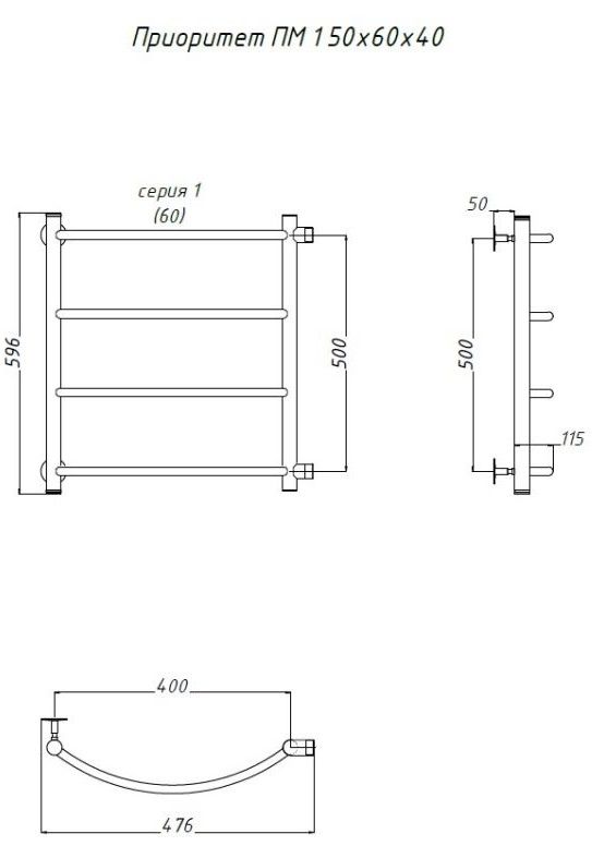 Водяной полотенцесушитель Тругор Приоритет ПМ 1 50x60x40см хром Приоритет1/пм506040 купить