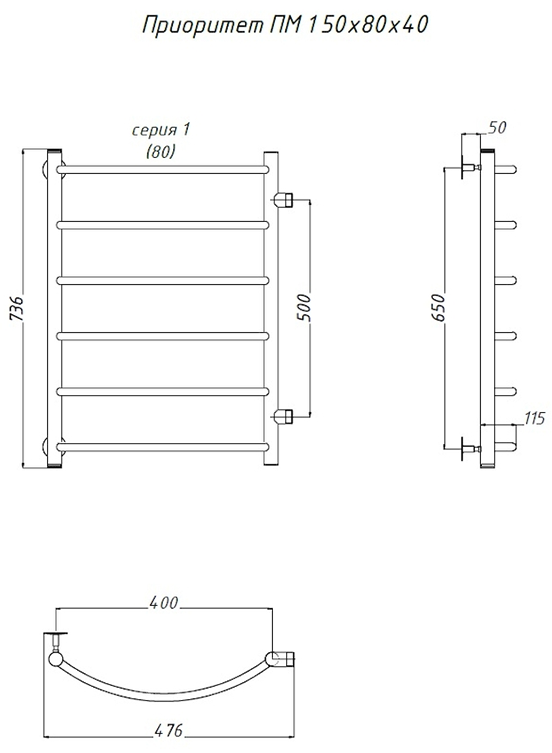 Водяной полотенцесушитель Тругор Приоритет ПМ 1 50x80x40см хром Приоритет1/ПМ508040 купить