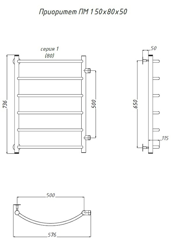 Водяной полотенцесушитель Тругор Приоритет ПМ 1 50x80x50см хром Приоритет1/ПМ508050 купить