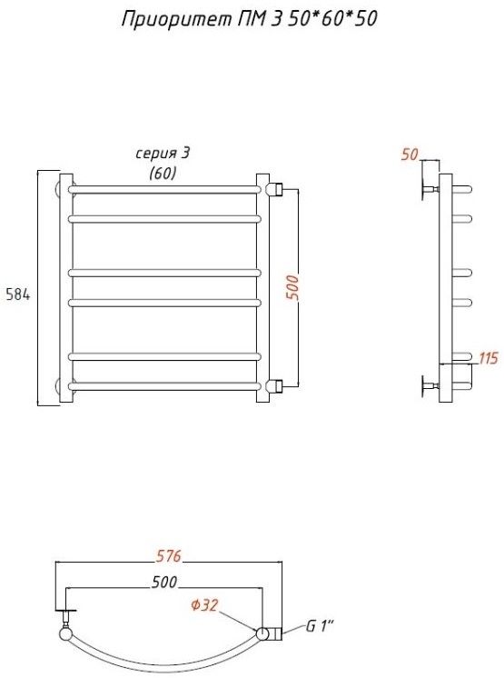 Водяной полотенцесушитель Тругор Приоритет ПМ 3 50x60x50см хром Приоритет3/ПМ506050 купить