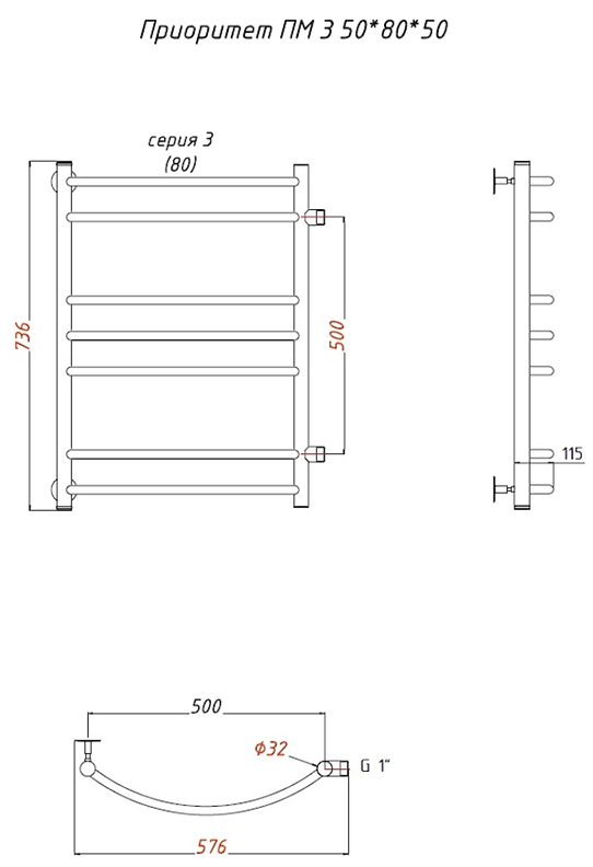 Водяной полотенцесушитель Тругор Приоритет ПМ 3 50x80x50см хром Приоритет3/ПМ508050 купить