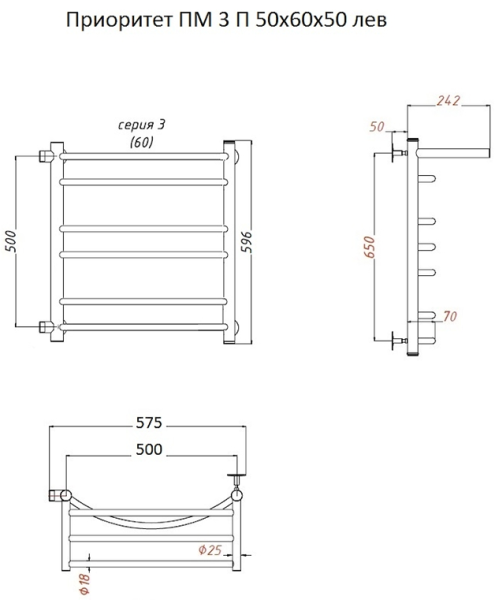 Водяной полотенцесушитель Тругор Приоритет ПМ 3 П 50x60x50см с полкой левый хром Приоритет3/ПМ506050Плев купить