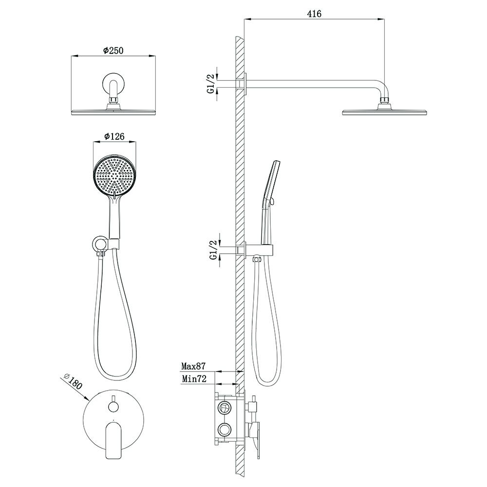 Встраиваемая душевая система LICATA, Золото брашинг купить