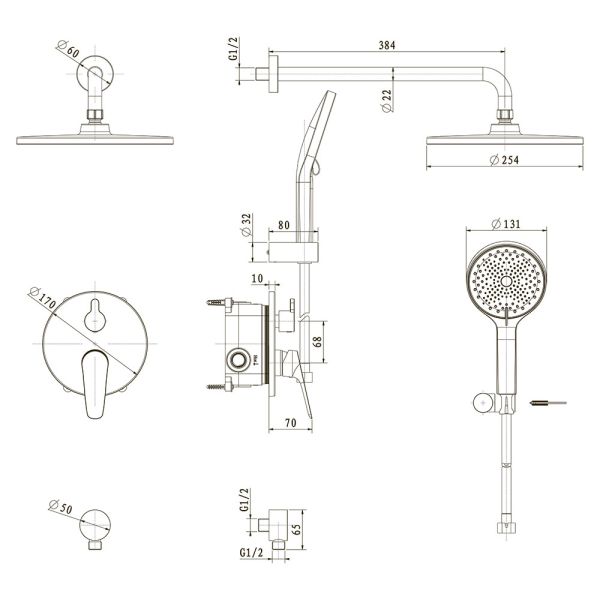 Встраиваемая душевая система TEORA, Золото брашинг купить