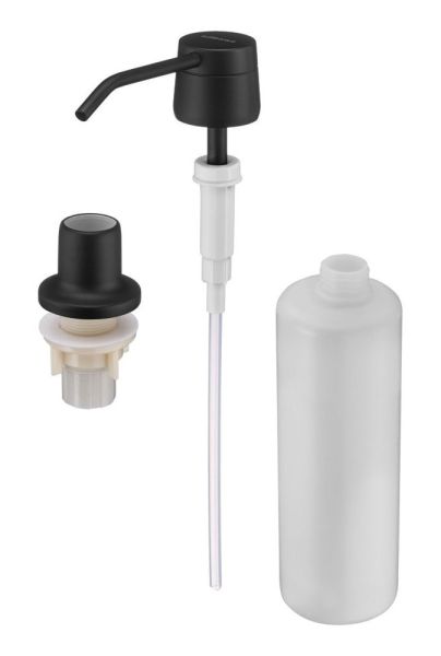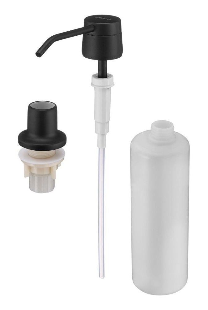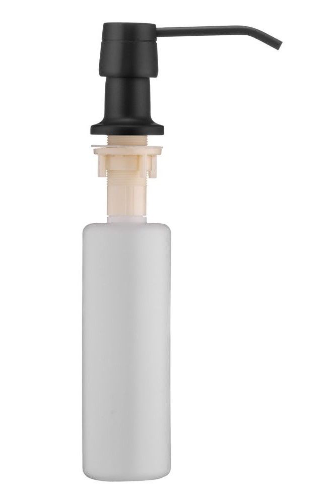 Встраиваемый дозатор для мылаЛатунь, ABS - пластик.Максимальная толщина столешницы 37 ммЦвет: черный.Объем: 330 мл