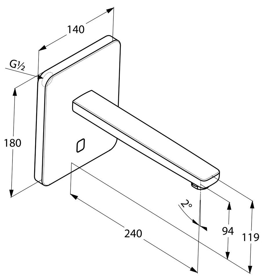 - длина излива 240 мм