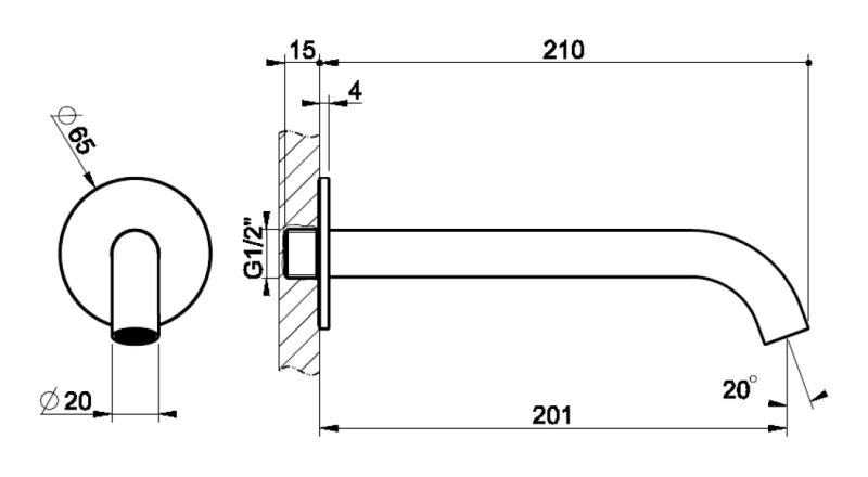 Настенный монтаж обеспечивает чистоту линий и визуальную легкость, позволяя интегрировать излив в любой интерьер, от классического до современного. Покрытие Brass Brushed PVD дополнительно улучшает износостойкость и придает изделию матовую текстуру, создавая уникальный визуальный эффект.