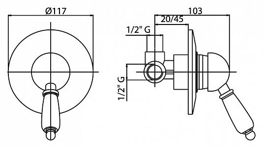 Встраиваемый однорычажный смеситель для душа, бронза Cezares ELITE-DIM-02-Nc купить