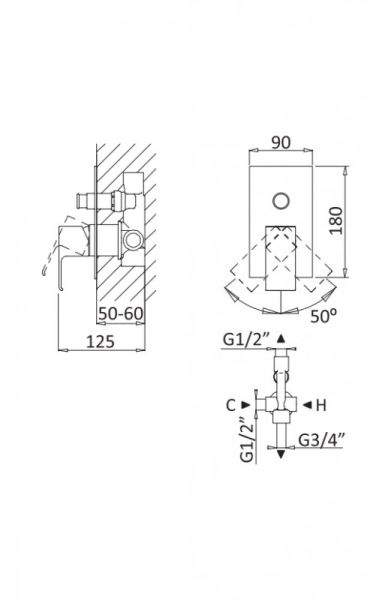 Тип подводки: внутренний (скрытый) монтаж 1/2"