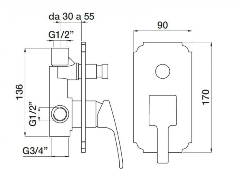 Встраиваемый однорычажный смеситель для душа с переключателем Cezares OLIMP-VDIM-02-L купить