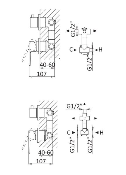 Тип подводки: внутренний (скрытый) монтаж 1/2"
