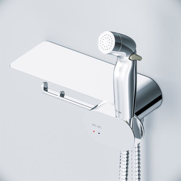 Самый широкий спектр возможностей с инновационным многофункциональным смесителем с гигиеническим душем от АМ.РМ! Смеситель оснащен прогрессивным картриджем, движение которого происходит в одной плоскости, делая управление максимально комфортным.Гигиенический душ зафиксирован непосредственно в самом смесителе, что экономит пространство и выглядит лаконично. Чтобы включить смеситель, достаньте гигиеническую лейку и поворотом ее держателя включите устройство. При нажатии на специальную кнопку на самой лейке начинается подача воды.Весь продукт представляет собой удобную полочку, на которой можно разместить все, что необходимо вам под рукой. На интегрированном держателе можно размещать туалетную бумагу, а на крючке - полотенце.Встроенный ограничитель температуры позволит избежать ожога.Совмещение рукоятки и держателя для гигиенического душа минимизирует риск забыть перекрыть воду в смесителе.