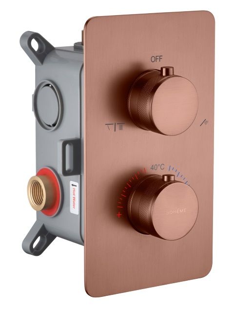 Новый встраиваемый смеситель для душа с термостатом Boheme CELL THERMO. Бокс для комфортного монтажа в стену. Термостат от мирового лидера, французского производителя Vernet. Версия на 2 выхода(верхний душ и ручная лейка) и версия на 3 выхода(верхний душ, ручная лейка и излив на выбор арт.625 и арт. 625/2). Идеально дополняется душевым набором Boheme CELL арт.427 с 2-х режимной верхней лейкой. 8 цветов в наличии.Смеситель для душа Boheme CellХарактеристики: