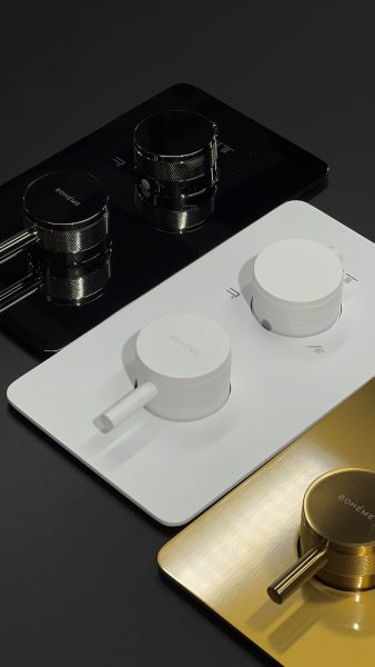 Новый встраиваемый смеситель для душа с термостатом Boheme CELL THERMO. Бокс для комфортного монтажа в стену. Термостат от мирового лидера, французского производителя Vernet. Версия на 2 выхода(верхний душ и ручная лейка) и версия на 3 выхода(верхний душ, ручная лейка и излив на выбор арт.625 и арт. 625/2). Идеально дополняется душевым набором Boheme CELL арт.427 с 2-х режимной верхней лейкой. 8 цветов в наличии.Смеситель для душа Boheme Cell 134-2-MW, термостатический, цвет белый матовыйХарактеристики: