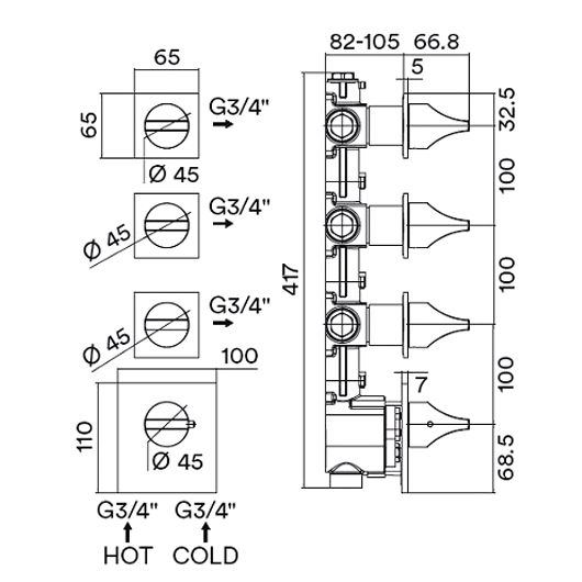 Термостат встраиваемый высокой пропускной способности Bossini Apice представляет собой идеальное решение для тех, кто ценит комфорт и стиль в ванной комнате. Его конструкция позволяет подключать от 3 до 6 выходов, что создает возможность гибкого управления водоснабжением. Элегантный черный матовый цвет внешней части добавляет нотки современности и sophistication, идеально вписываясь в различные дизайнерские концепции.