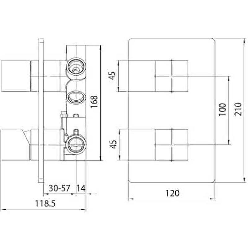 Bossini смеситель механический встраиваемый с дивертором для душа на 2 направления 1/2” встраиваемый, внешняя часть, цвет хром