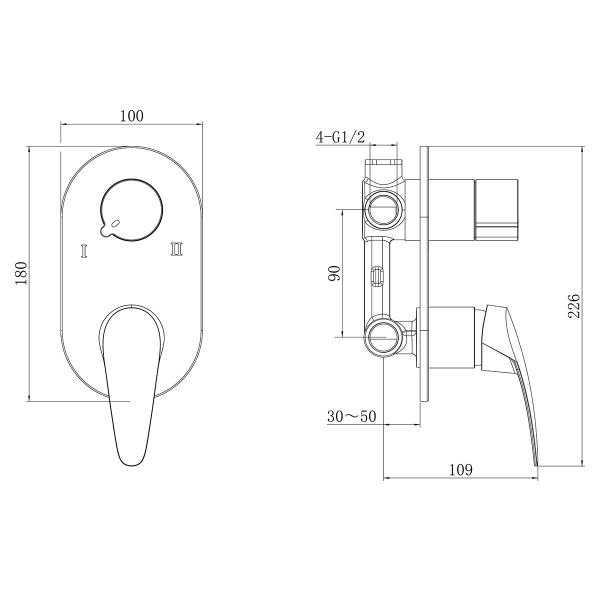 - 2-позиционный картриджный переключатель (угол поворота 120°)